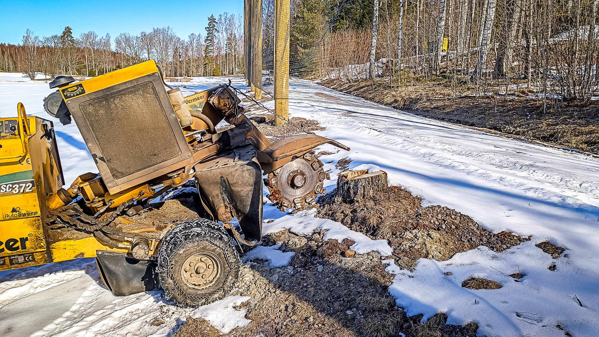 - Jyrsin liikkuu työmaalla omilla kumipyörillään